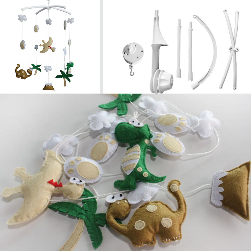 Home > Handmade Baby Crib Mobile Beige Green Brown Baby Musical Mobile Kids Room Nursery Decor; The Age of Dinosaurs