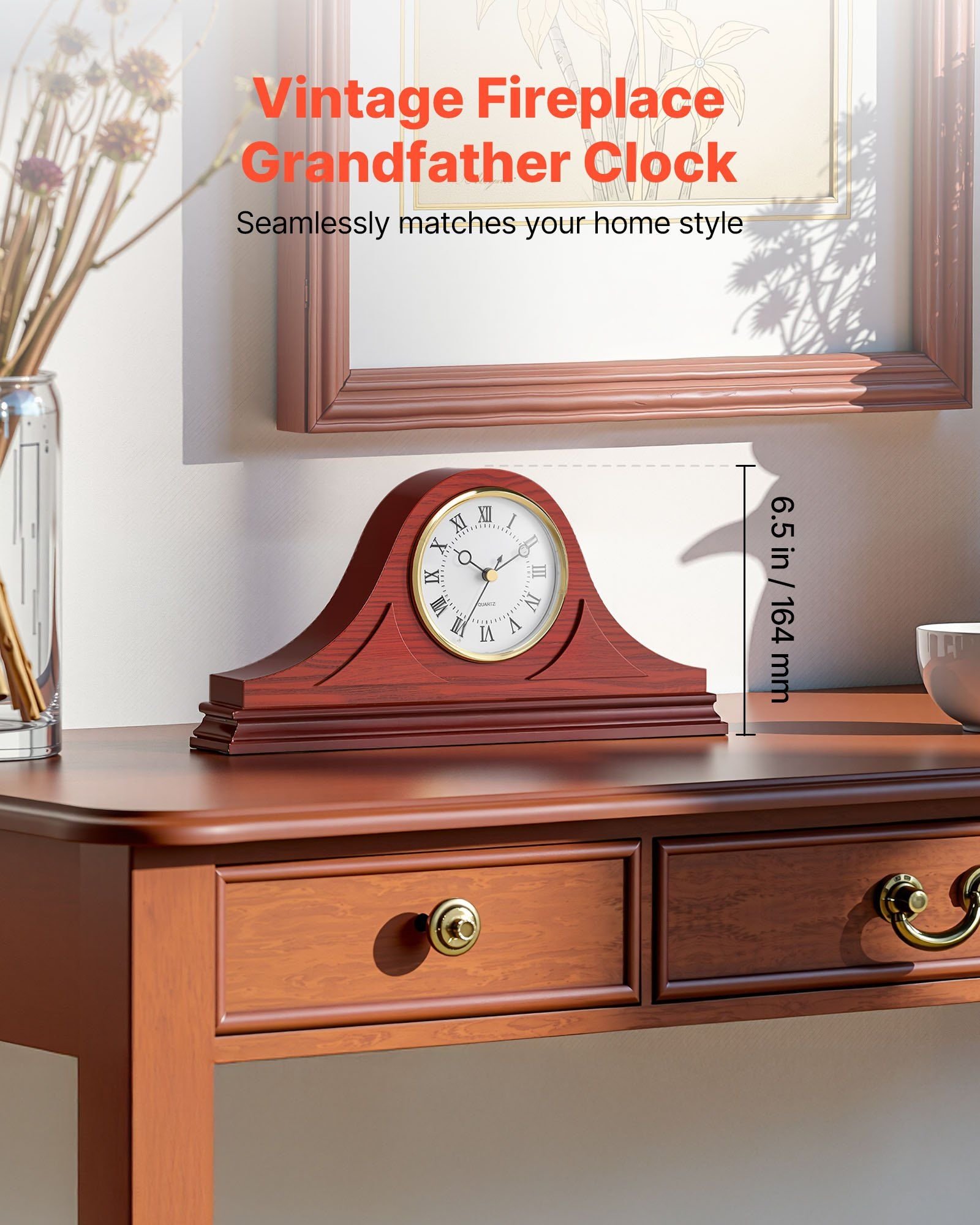 4.Completely Silent: This grandfather mantel clock is designed for silent operation, like a grandfather's love-quietly guarding your peaceful moments. Whether in the bedroom for sleep or the study for focus, it won't disturb you, letting you enjoy life's quiet beauty