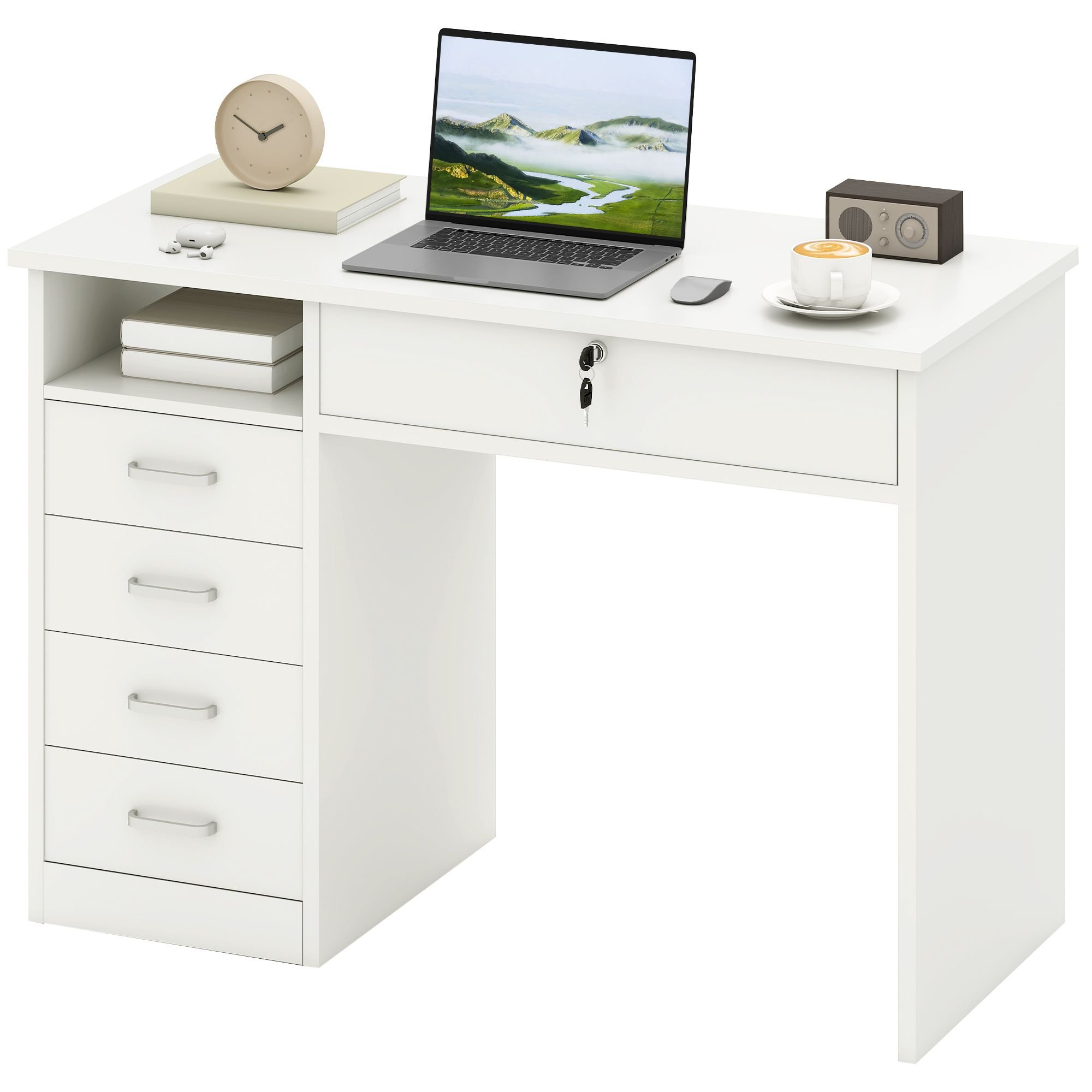 Home Office Desk with Storage, Computer Desk with Lockable Drawer and Open Compartment, White Home Office Desk with Storage, Computer Desk with Lockable Drawer and Open Compartment, White Home Office Desk with Storage, Computer Desk with Lockable Drawer and Open Compartment, White