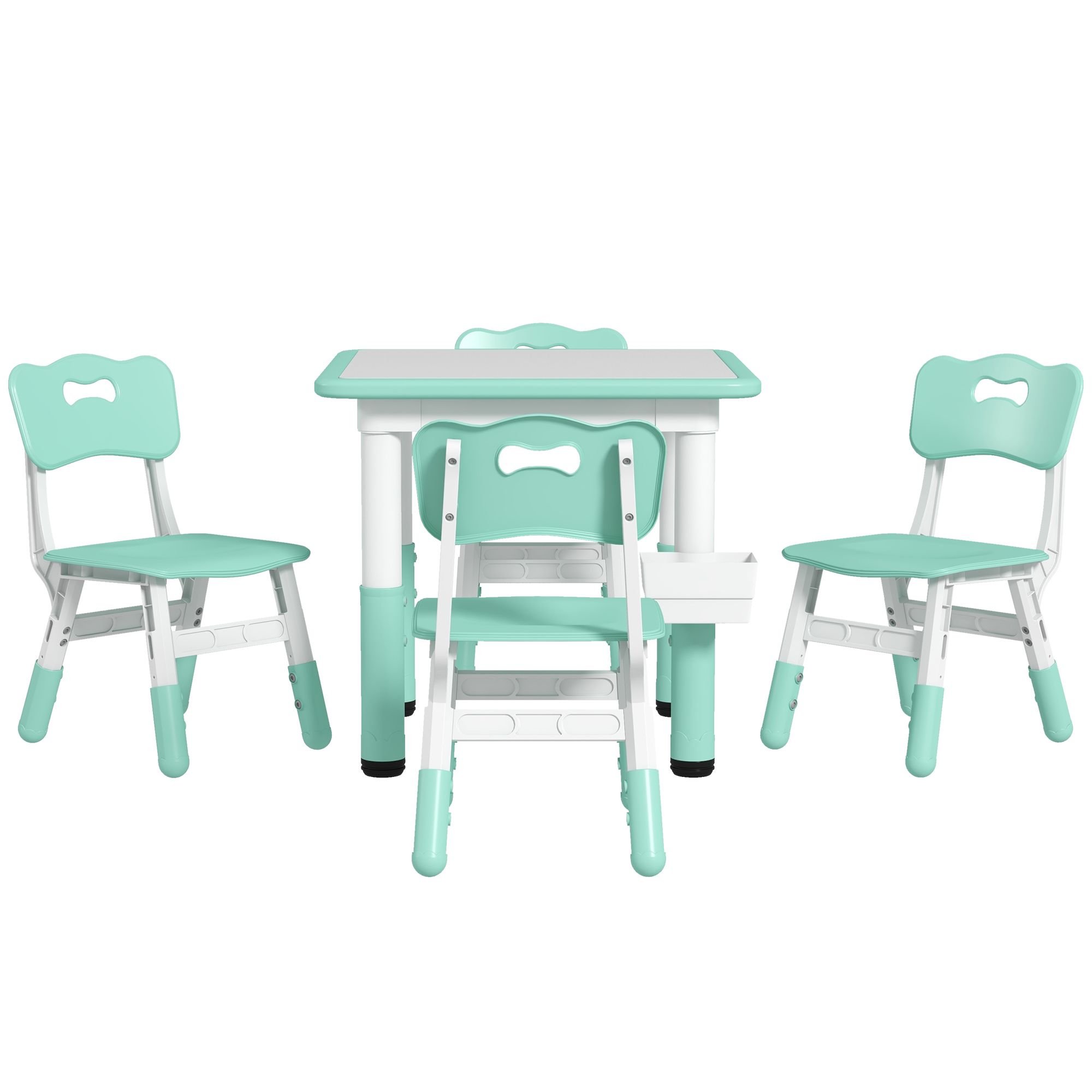 Qaba Height Adjustable 5pc Toddler Table and Chair Set with Storage Box, Green, Easy to Wipe, for 18 Months - 5 Years
