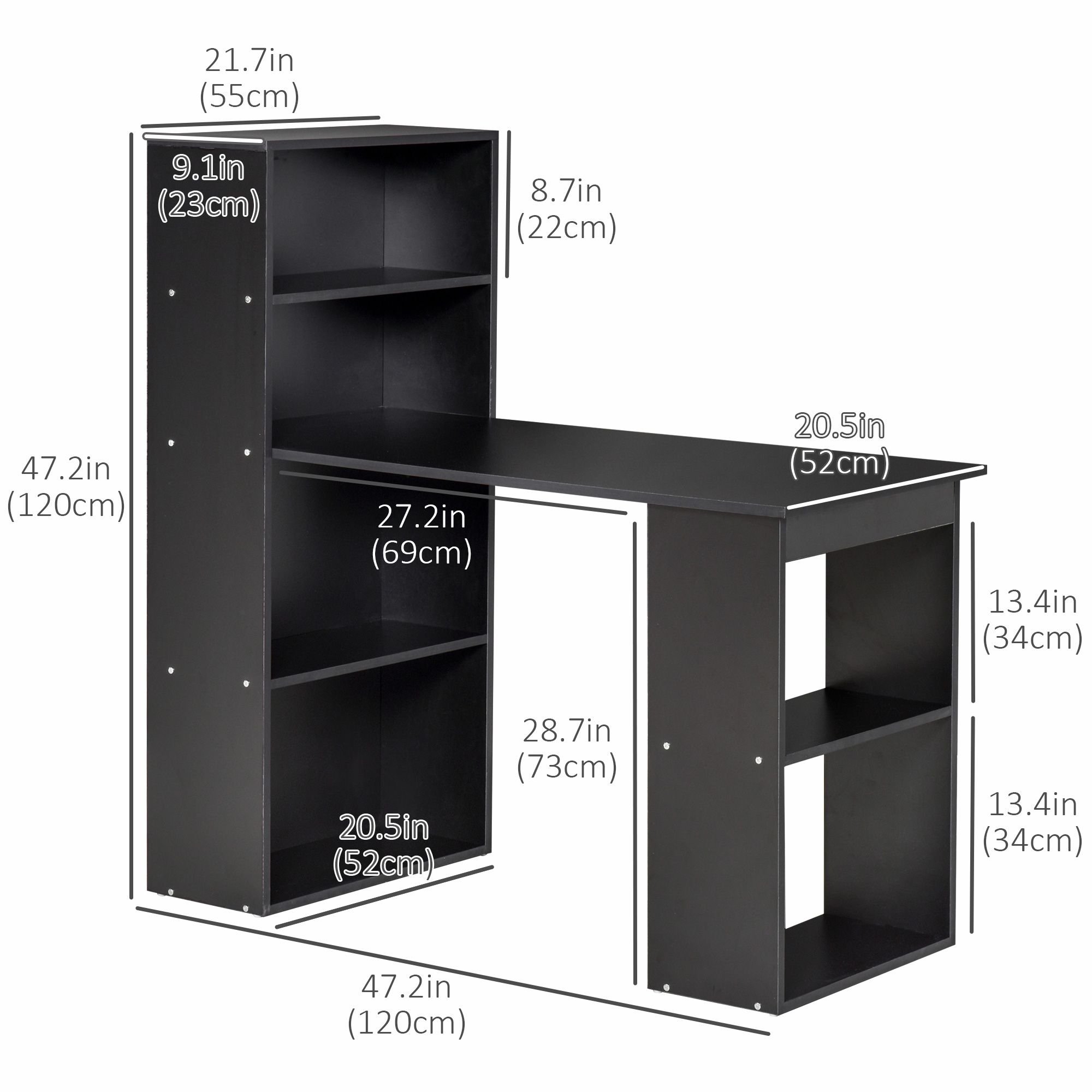 Modern Computer Desk with Storage Shelves, 47" Writing Table Workstation with Bookshelf for Home Office, Black Modern Computer Desk with Storage Shelves, 47" Writing Table Workstation with Bookshelf for Home Office, Black Modern Computer Desk with Storage Shelves, 47" Writing Table Workstation with Bookshelf for Home Office, Black