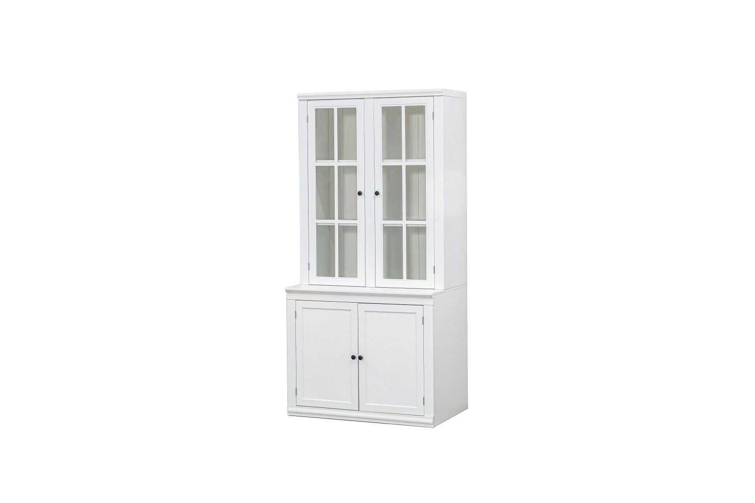 75.25'' Tall 36.25'' Wide Retro Style Display Cabinet:The neutral white finish effortlessly bridges modern and traditional aesthetics, making it a timeless addition to living rooms, study rooms, hallways, and offices. The practical storage design provides ample space for media, books, and collectibles, all in a stylish package. Plus, its retro design brings artistic flair—whether it stands alone as a hallway centerpiece or is grouped to form a stunning gallery wall.Product Features and Details:2x High Transparent Glass Doors: Offer a clear view of your collectibles, trophies, or retail displays, while keeping them dust-free.2x Solid Cabinet Doors: Glass doors protect treasures; Cabinet shelves handle clutter.2x Adjustable Shelves: Customize the storage to fit your needs.Expandable Modular design: Easily pair with other products in the same series to fit different space sizes.Retro Styling with Painted Finish: Keeping your hallway, studio, or office looking sharp for years.Easy Assembly: Comes with a detailed instruction manual; assembly is a snap with two people.Easy Maintenance: Crafted from premium MDF, this collection features a smooth, warp-resistant painted finish that stands up to wear and tear. Simply wipe with a dry cloth to keep it looking pristine.Package Information: The product is packaged in 2 boxes.