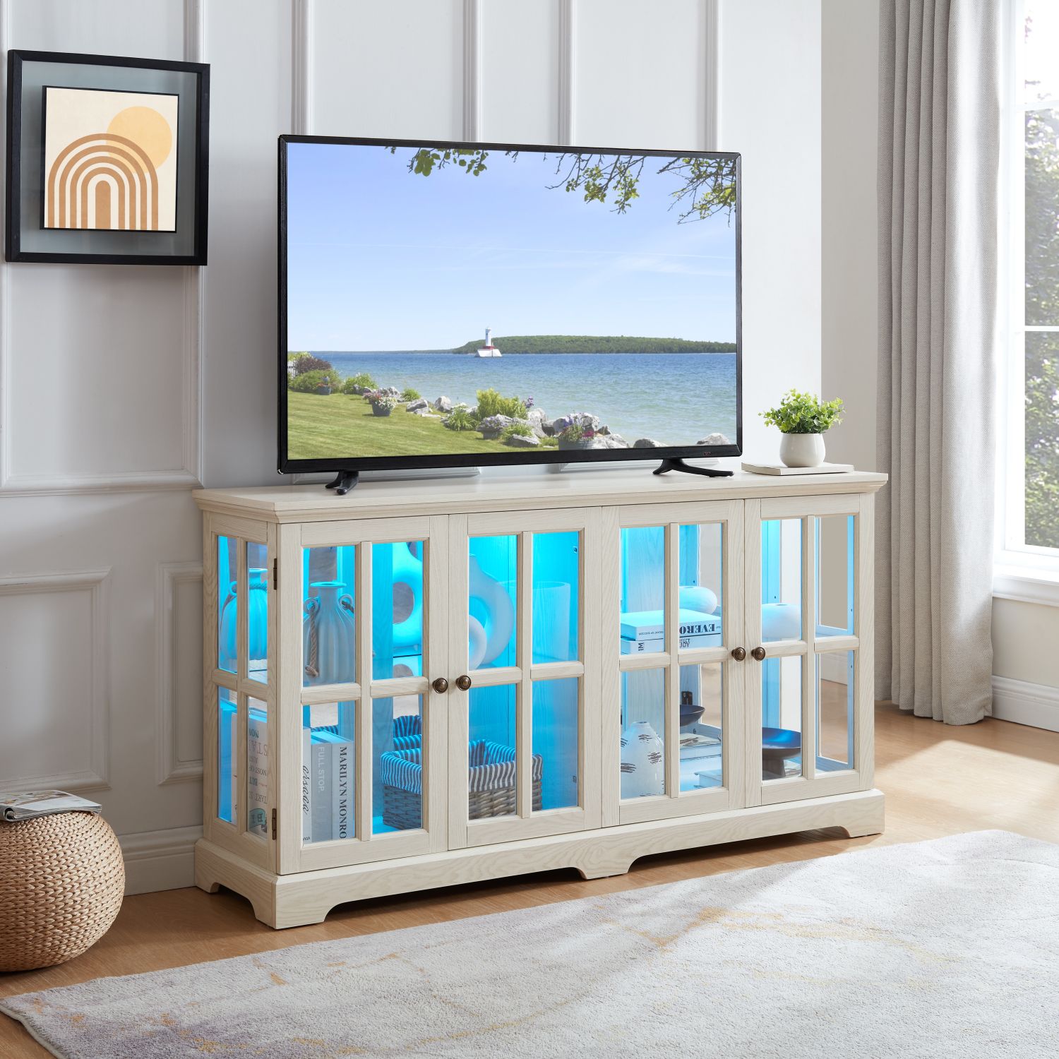 Antique White Glass CabinetElevate your home decor with our exquisite Antique White Glass Cabinet. Crafted with a White finish, this elegant piece seamlessly blends classic charm with modern functionality. The stunning grid-style doors offer a glimpse into your cherished collectibles, while the adjustable glass shelves provide versatility for displaying items of various sizes.One of the standout features of this cabinet is the integrated 7-color LED lighting system, allowing you to customize the ambiance with just a touch of a button using the included remote control. Whether you're showcasing your prized antiques, using it as a stylish entertainment center for your television, or serving as a sophisticated dining sideboard, this cabinet adapts to your needs.Perfect for any space, this multifunctional antique glass cabinet serves as both a beautiful display case and a practical piece of furniture. Transform your home with a blend of elegance and utility