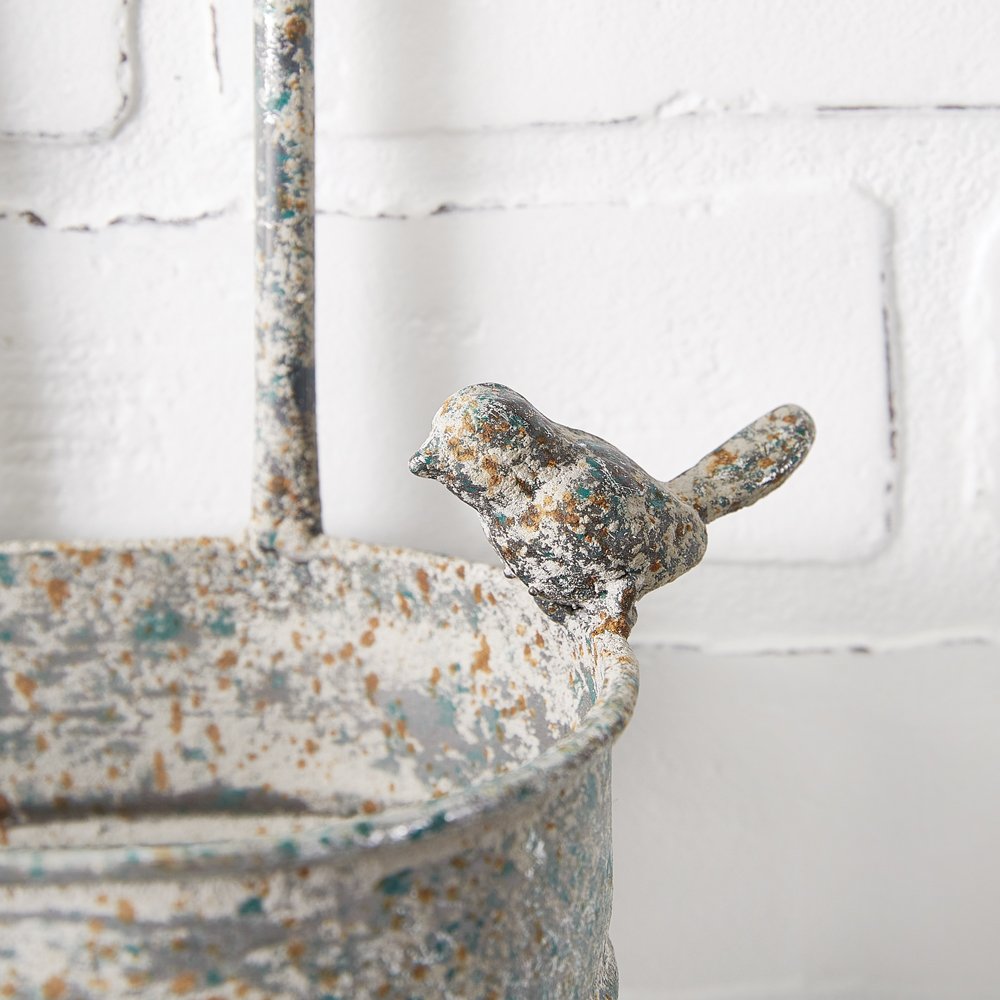 Elevate your garden decor with the elegance of our Garden Fence Wall Planter. Place a potted plant inside and feature your favorite flowers. Item is crafted of metal and is not guaranteed watertight. To hang, use its two keyhole hangers.