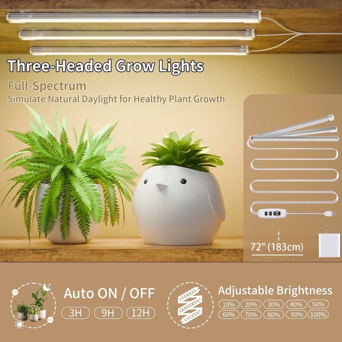 • Enhance the growth of your indoor plants with our plant stand, featuring full-spectrum, timer-enabled grow lights that cater to the varying light needs of plants at different stages. The three-head grow lights ensure even illumination for all tiers, allowing you to place this shelf anywhere indoors without the hassle of moving plants for sunlight.