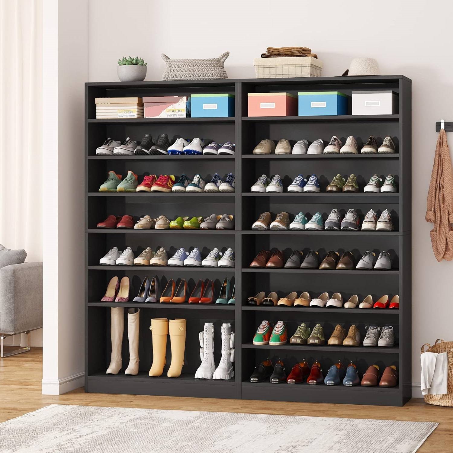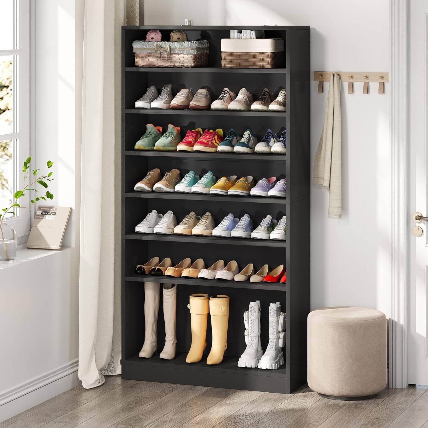 Home > 8-Shelf Shoe Rack Storage Cabinet Closet Shelving Unit in Black Wood Finish
