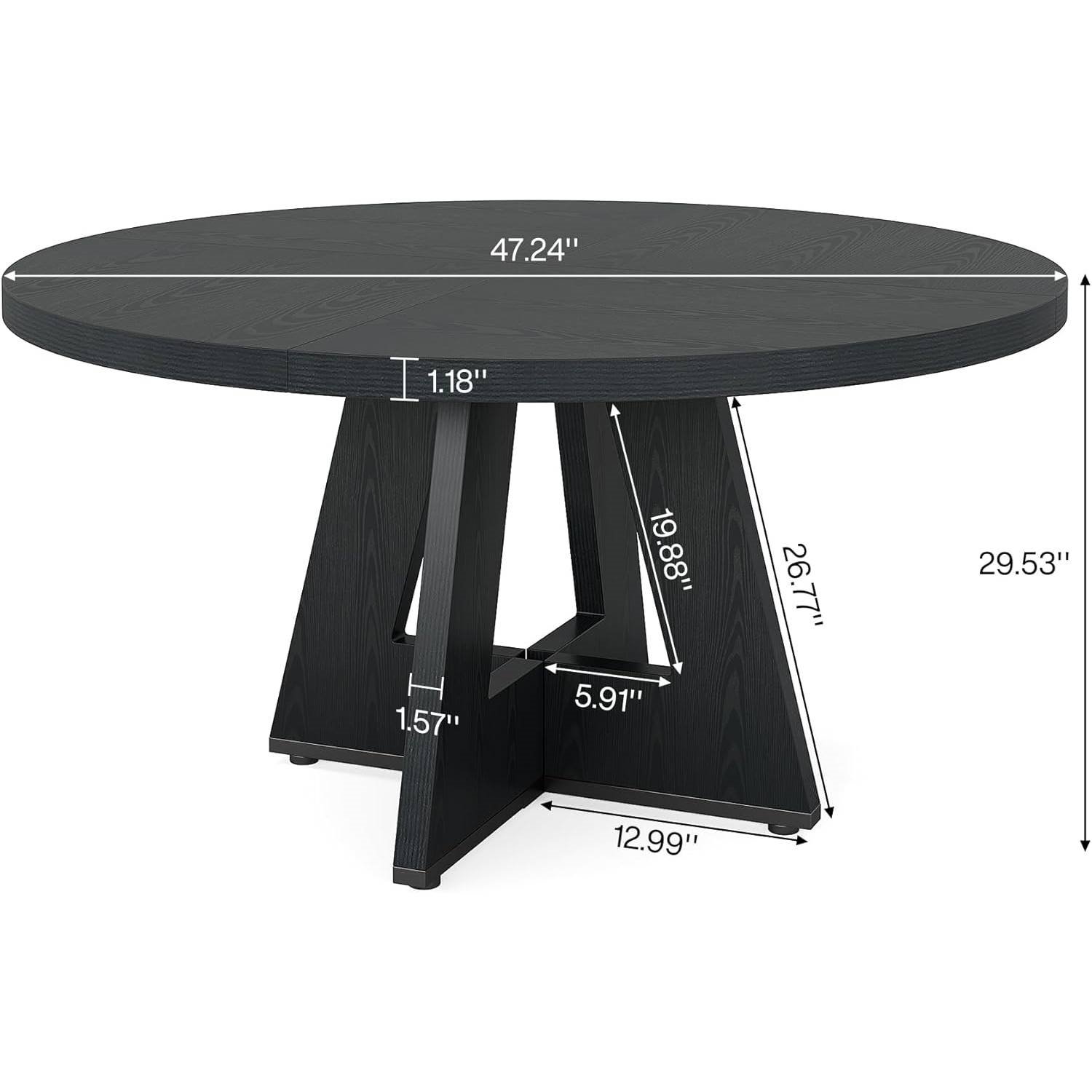 Modern Farmhouse 47-inch Round Kitchen Dining Table in Black Wood Finish