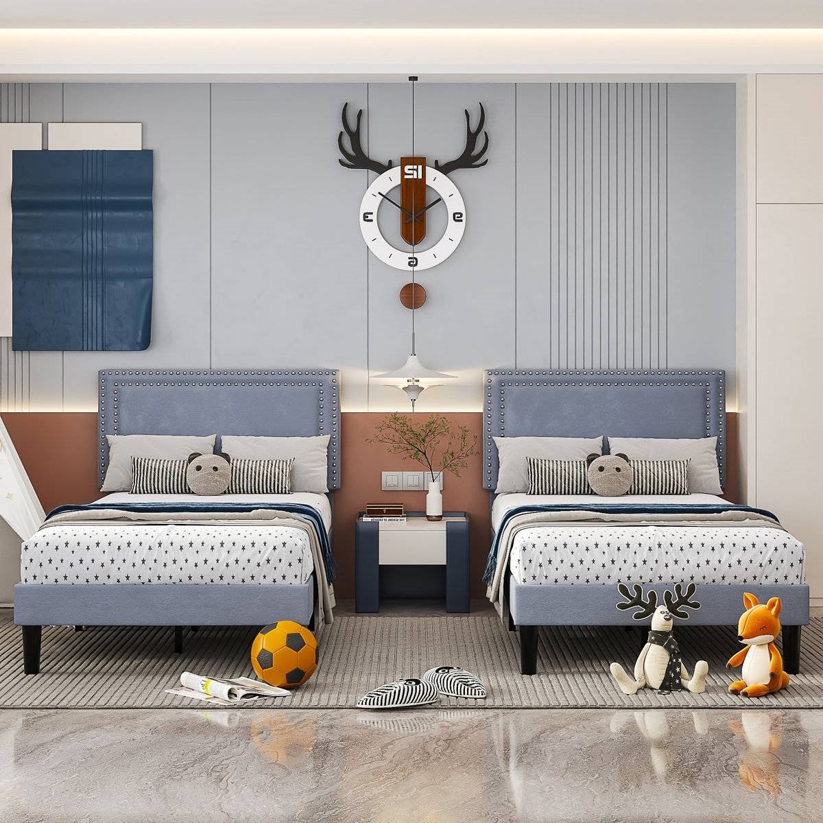 Set of 2 - Twin size Grey Upholstered Platform Bed Frame with Headboard Set of 2 - Twin size Grey Upholstered Platform Bed Frame with Headboard Set of 2 - Twin size Grey Upholstered Platform Bed Frame with Headboard Set of 2 - Twin size Grey Upholstered Platform Bed Frame with Headboard Set of 2 - Twin size Grey Upholstered Platform Bed Frame with Headboard