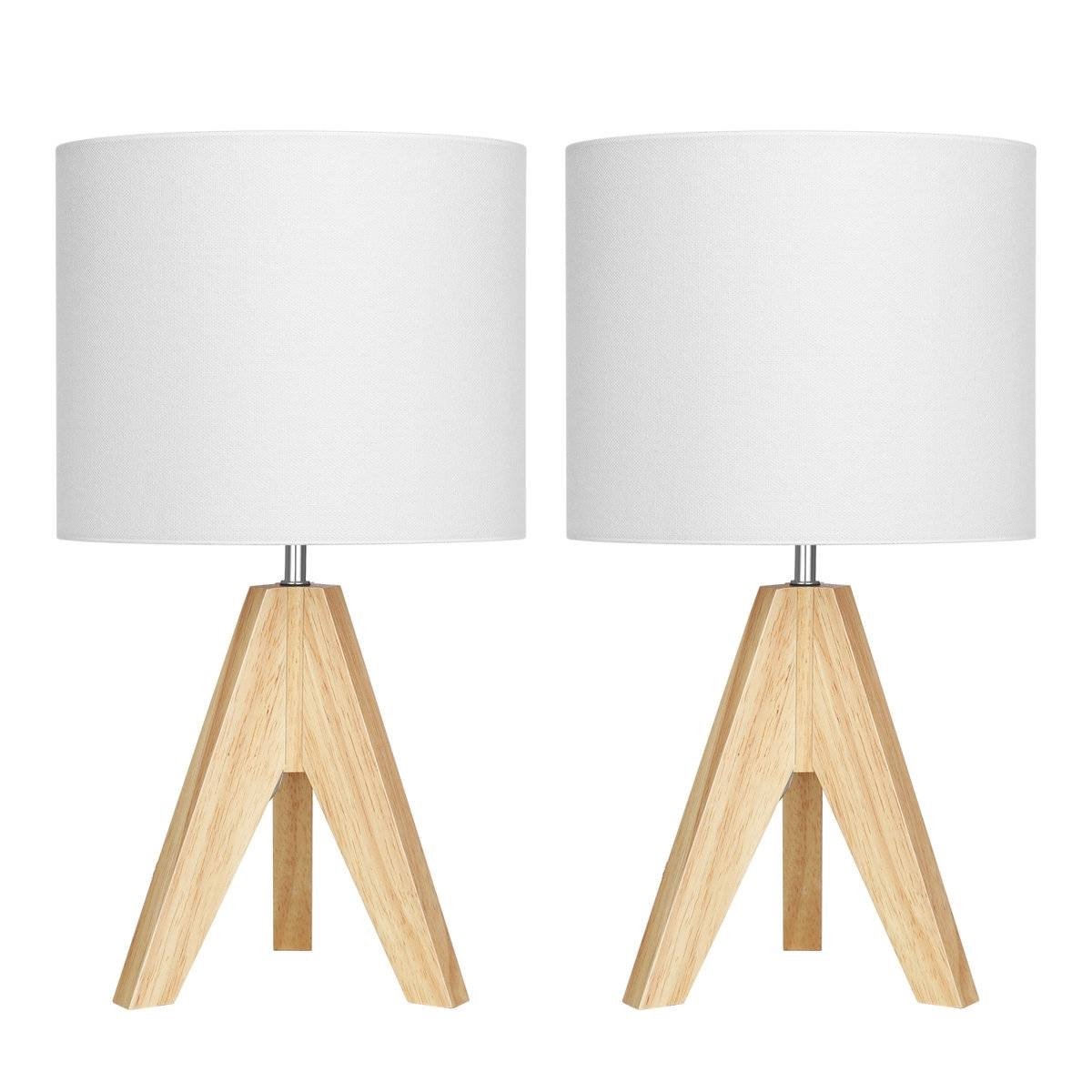 Set of 2 - Scandinavian Style Tripod Desk Lamp with White Linen Drum Shade