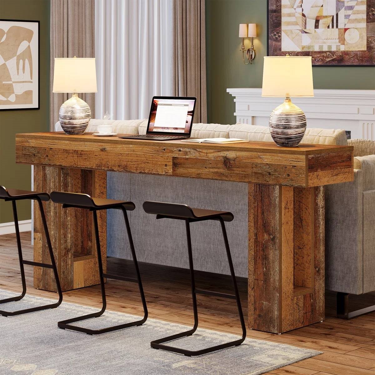 • Modern Farmhouse 63-inch Entryway Console Sofa Table in Distressed Wood Finish