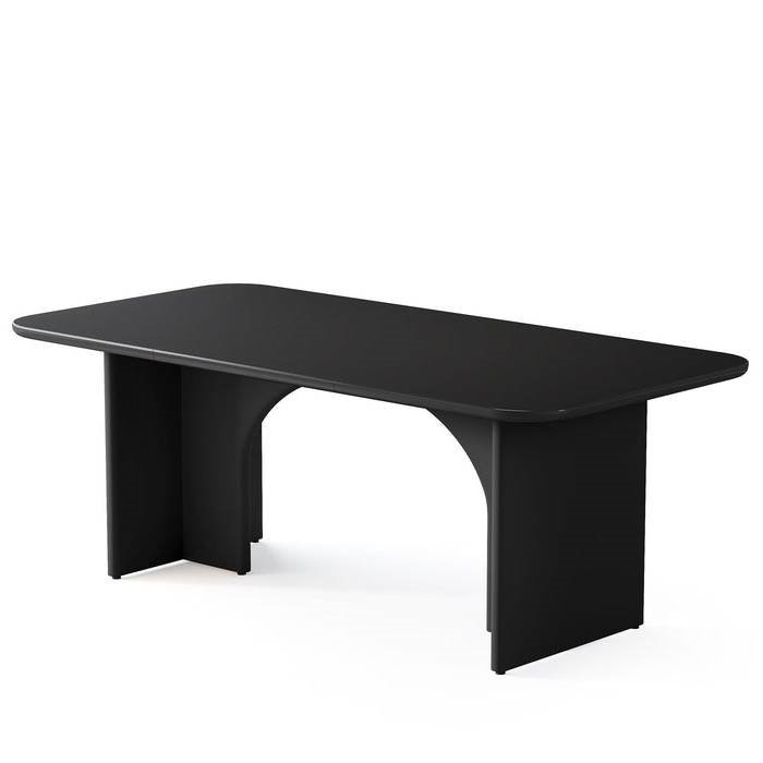 This black desk features a unique arch design that adds an artistic flair, combining functionality and style. Measuring 63"W x 31.5"D x 29.5"H, our desk offers plenty of space for office essentials and can comfortably seat 1-2 people with ample legroom. Made with durable MDF, this desk can handle heavy weights and resist scratches and dents. It's an investment you can count on for longevity and stability. This desk can fulfill various needs serving as a computer desk, gaming desk, office desk, or executive desk.