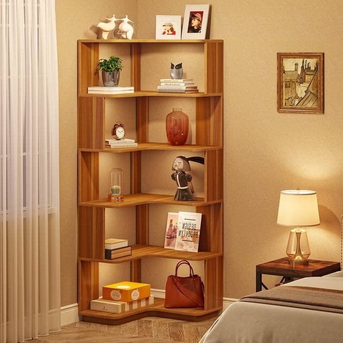 Multifunctional 6 Shelf Corner L-Shaped Bookcase in Brown Wood Finish Multifunctional 6 Shelf Corner L-Shaped Bookcase in Brown Wood Finish Multifunctional 6 Shelf Corner L-Shaped Bookcase in Brown Wood Finish Multifunctional 6 Shelf Corner L-Shaped Bookcase in Brown Wood Finish