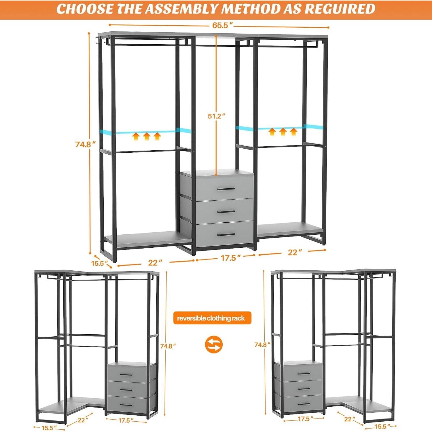 Heavy Duty Black Grey Freestanding Garment Rack Closet Wardrobe with 3 Drawers Heavy Duty Black Grey Freestanding Garment Rack Closet Wardrobe with 3 Drawers Heavy Duty Black Grey Freestanding Garment Rack Closet Wardrobe with 3 Drawers Heavy Duty Black Grey Freestanding Garment Rack Closet Wardrobe with 3 Drawers