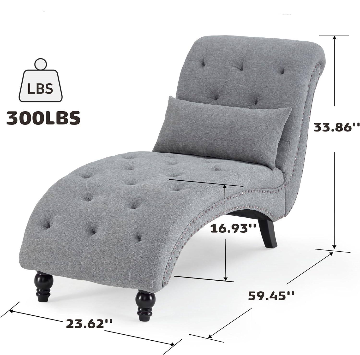 This Linen Tufted Armless Chaise Lounge Chair w/ Pillow Grey is crafted with high-density foam and premium linen fabric, this exquisite indoor chaise lounge chair offers an oasis of relaxation, whether you're reading, resting or savoring a moment of tranquility. Includes a square cushion designed to provide excellent support for your lower back, ensuring a more comfortable relaxation experience.